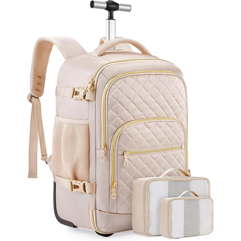 롤링 백팩 여성을위한 여행 캐리 온 백팩 성인용 바퀴 17 인치 대형 롤러 백팩